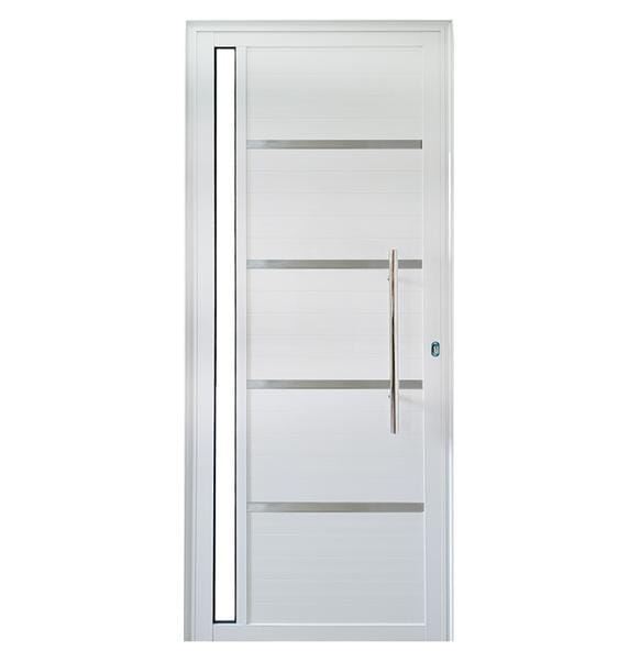 Porta Lambril de Alumínio Branco com Friso, Vidro Lateral e Puxador